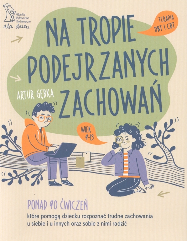 Każdy z nas codziennie podejmuje wiele różnych zachowań. Niektóre z nich pomagają nam budować relacje, osiągać ważne dla nas cele oraz chronić się przed niebezpieczeństwem, z kolei inne mogą sprowadzać na nas kłopoty, ranić naszych bliskich, a nawet nas samych. Dotyczy to również dzieci. Jak rozpoznać, które zachowania nam służą, a które nie? Czy możliwe jest wyeliminowanie ze swojego życia wszystkich podejrzanych zachowań? I czy można oceniać kogoś tylko na podstawie jego zachowania? Na te i inne pytania odpowiada książka Na tropie podejrzanych zachowań. Została ona napisana z myślą o dzieciach w wieku 9–13 lat. W tym wieku coraz częściej pojawiają się zachowania, które mogą niepokoić rodziców i opiekunów. Dzieci w naturalny sposób zaczynają śmielej eksplorować otaczający je świat, podejmując również zachowania bardziej ryzykowne. Ćwiczenia zawarte w książce, oparte na technikach terapii poznawczo-behawioralnej oraz terapii dialektyczno-behawioralnej, pomogą dziecku ograniczyć zachowania, które mu nie służą, i budować obraz siebie w sposób życzliwy, bez krzywdzących ocen na swój temat. Bohaterowie książki mają do rozwiązania sześć zagadek związanych z podejrzanymi zachowaniami. Zachowania te stanęły na drodze dzieci, sprowadzając na nie wiele kłopotów.